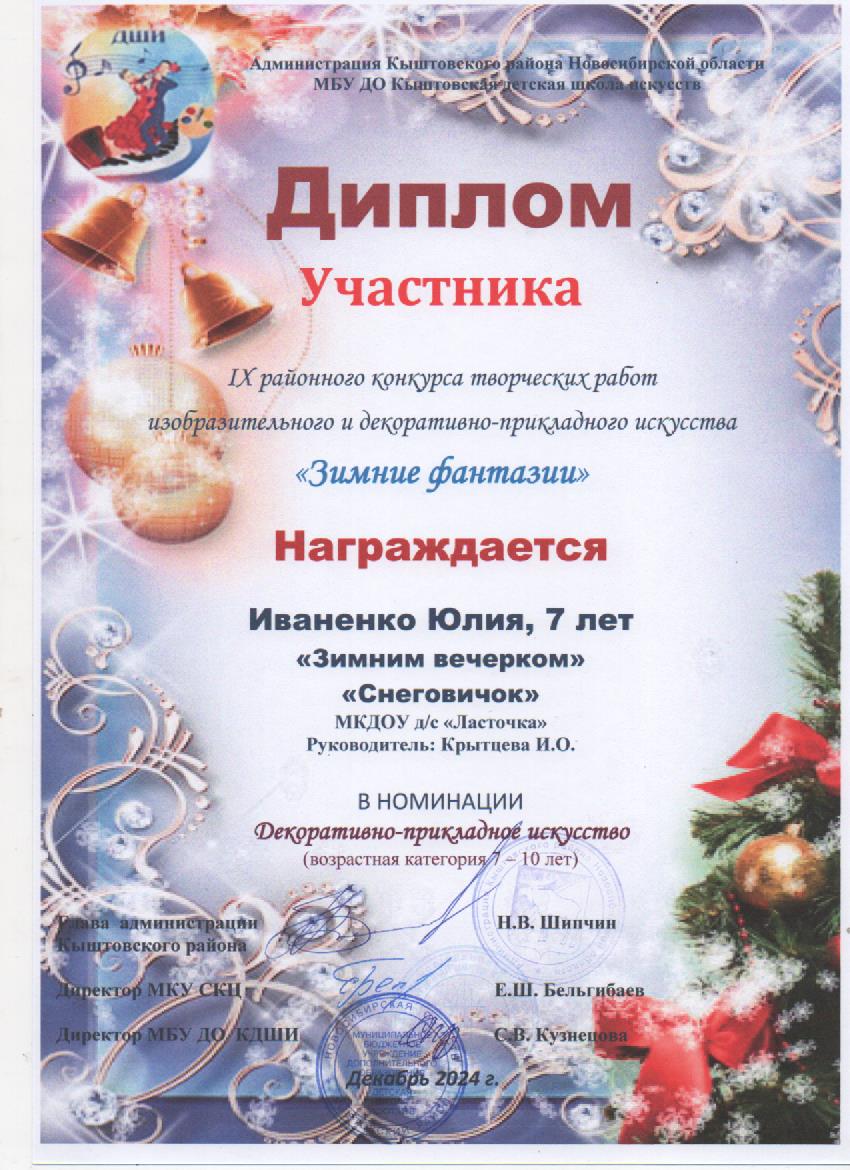 районный конкурс творческих работ изобразительного и декоративно- прикладного искусства "Зимние фантазии"