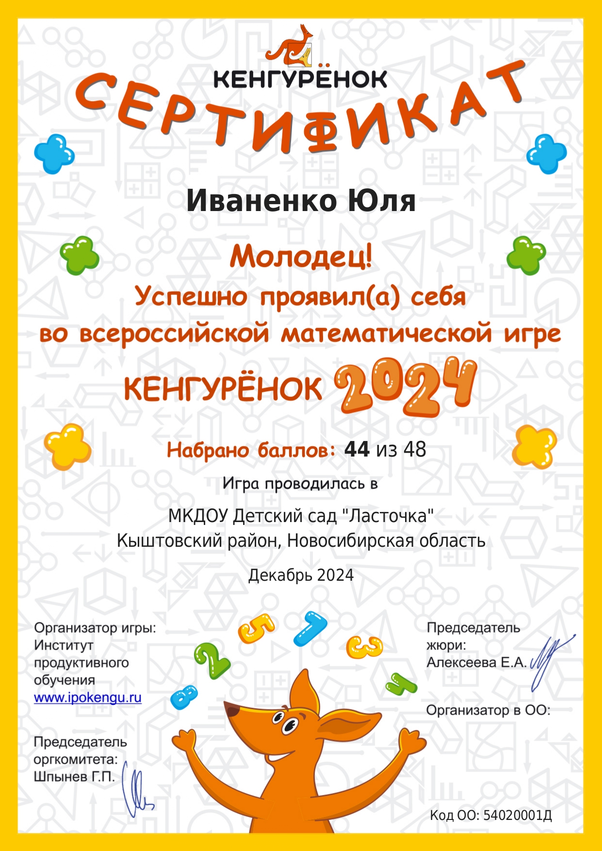 сертификат 44 балла